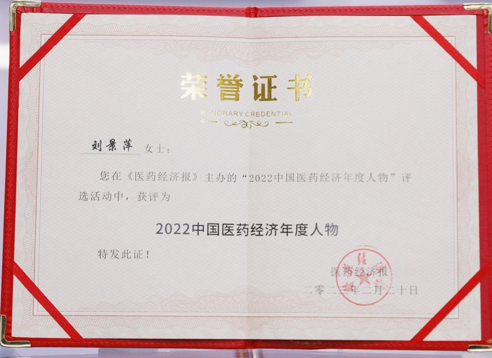 6008集团药业集团董事长刘景萍当选“2022中国医药经济年度人物”